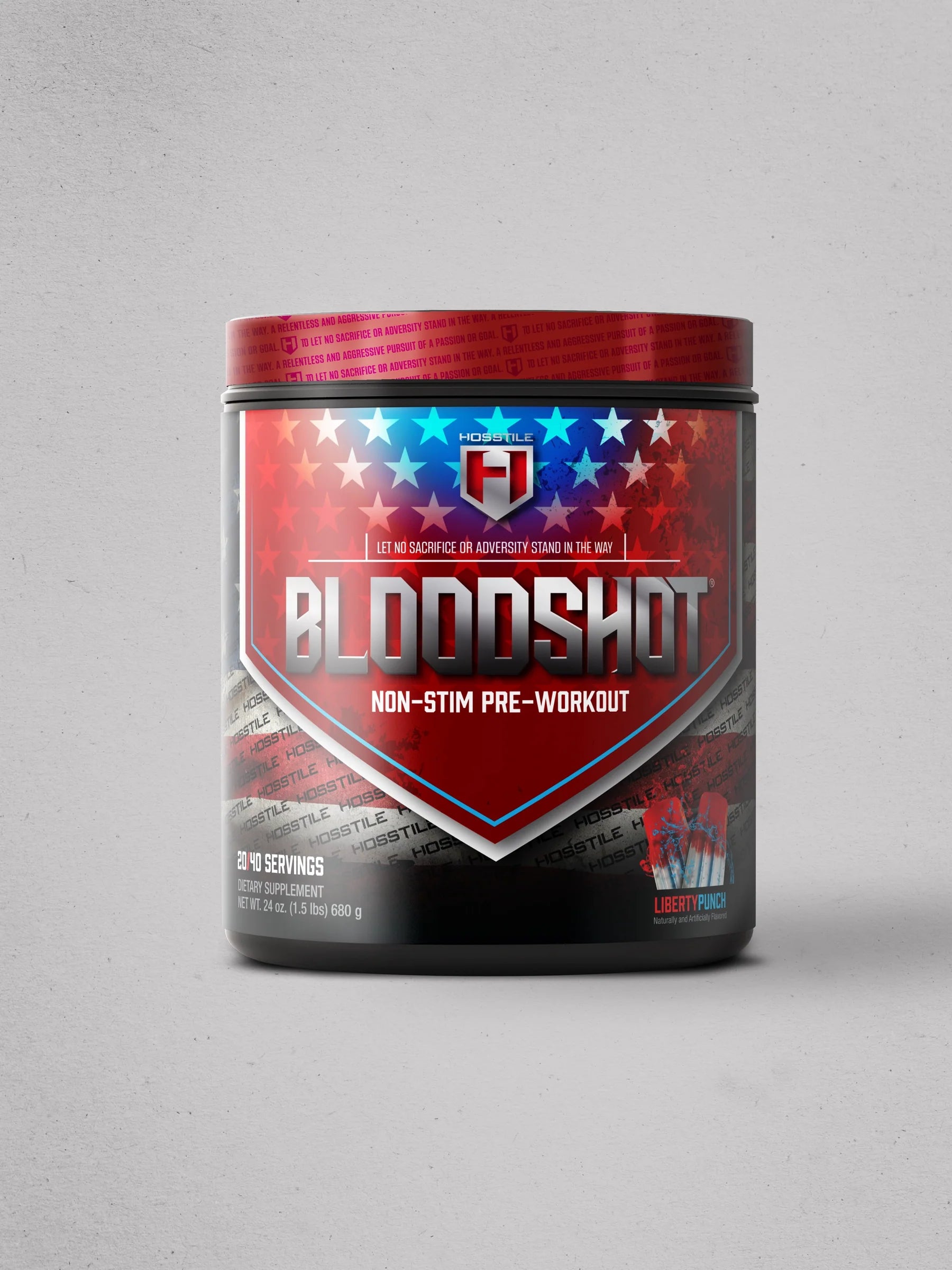 BLOODSHOT is formulated to be the strongest stimulant-free pump pre-workout formula delivering five cutting-edge, premium ingredients that work synergistically to support powerful muscle pumps and vasodilation.