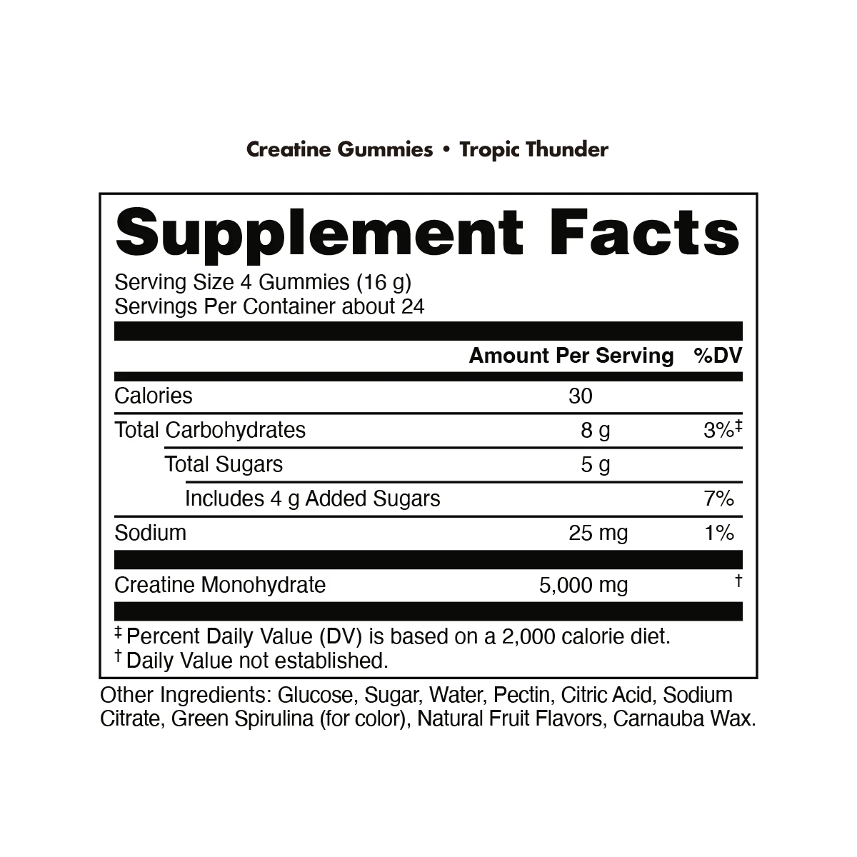 Each gummy is packed with a hefty 5,000mg of pure creatine monohydrate—engineered to promote muscle mass, strength, and recovery with exercise.*