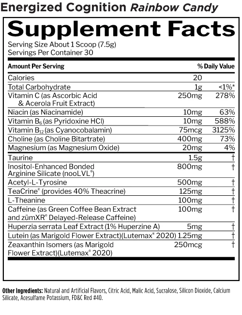Fight off fatigue. Beat back the brain fog. Tackle your next task. With researched, licensed, and patented ingredients like nooLVL®, TeaCrine®, zumXR®, and Lutemax® as well as L-theanine, choline, tyrosine, and green coffee caffeine, Energized Cognition is designed to help keep you sharp, energized, and focused.^