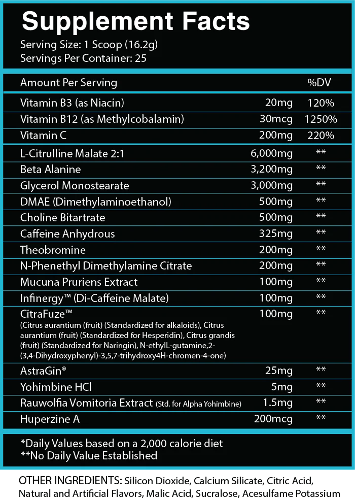 With each serving of God of Rage® UNCHAINED, your workouts will get a surge of unparalleled energy and focus, thanks to potent ingredients like Caffeine (two forms), Theobromine, DMAE, Alpha Yo, and Eria. These ingredients work synergistically to deliver an effective boost, keeping you motivated, focused, and driven throughout your entire session!*