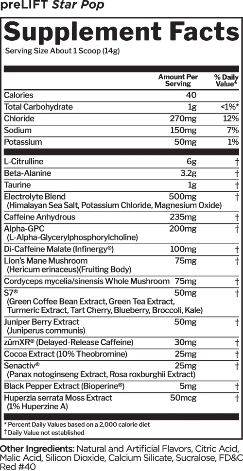 We loaded preLIFT™ with 25 different active ingredients including 6 licensed/patented compounds, designed to help serious lifters prepare and ultimately prevail over any training challenge. Each serving supports mental alertness, muscle endurance, and lasting energy. It’s the complete pre-workout preparation package.^